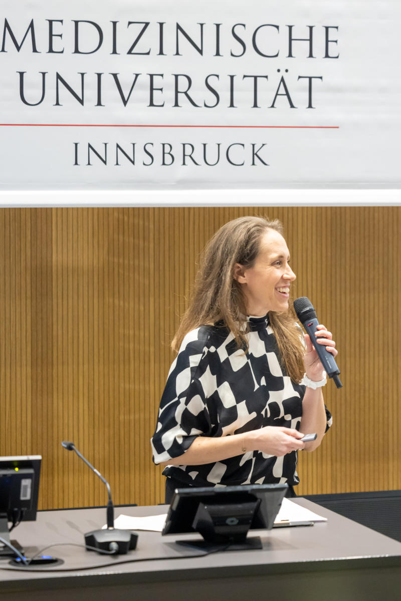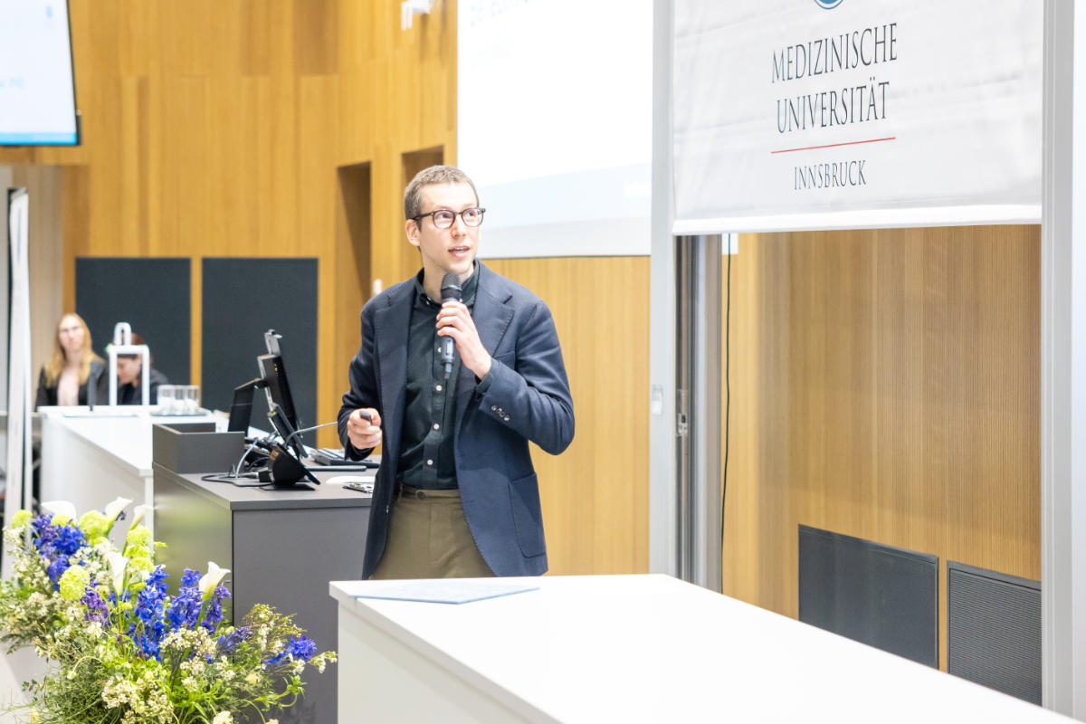 Der Science Day ist seit 2014 das Aufnahme- und Begrüßungsritual für die neuen Privatdozent:innen der Med Uni Innsbruck. 50 bis 60 Habilitationen werden hier im Durchschnitt jedes Jahr verzeichnet. Alexander Hüttenhofer, der Vorsitzende der Habilitationskommission, betonte, dass eine Habilitation kein 100-Meter-Sprint, sondern ein Marathon sei, mit entsprechenden Durststrecken, aber auch mit Momenten großer Freude. Die anstehende Karriere an der Universität sei darüber hinaus der Ultramarathon, in denen die Habilitierten nun mehrere Jahrzehnte wissenschaftlich arbeiten würden. Dabei könnten sie wiederum ihre Erkenntnisse an andere Doktorand:innen und Masterstudierende weitergeben – und das in einer großen Bandbreite an Forschungsgebieten. „Wissenschaft ist kein Job, sie ist ein Privileg“, gab Hüttenhofer den Habilitand:innen abschließend mit auf den Weg.