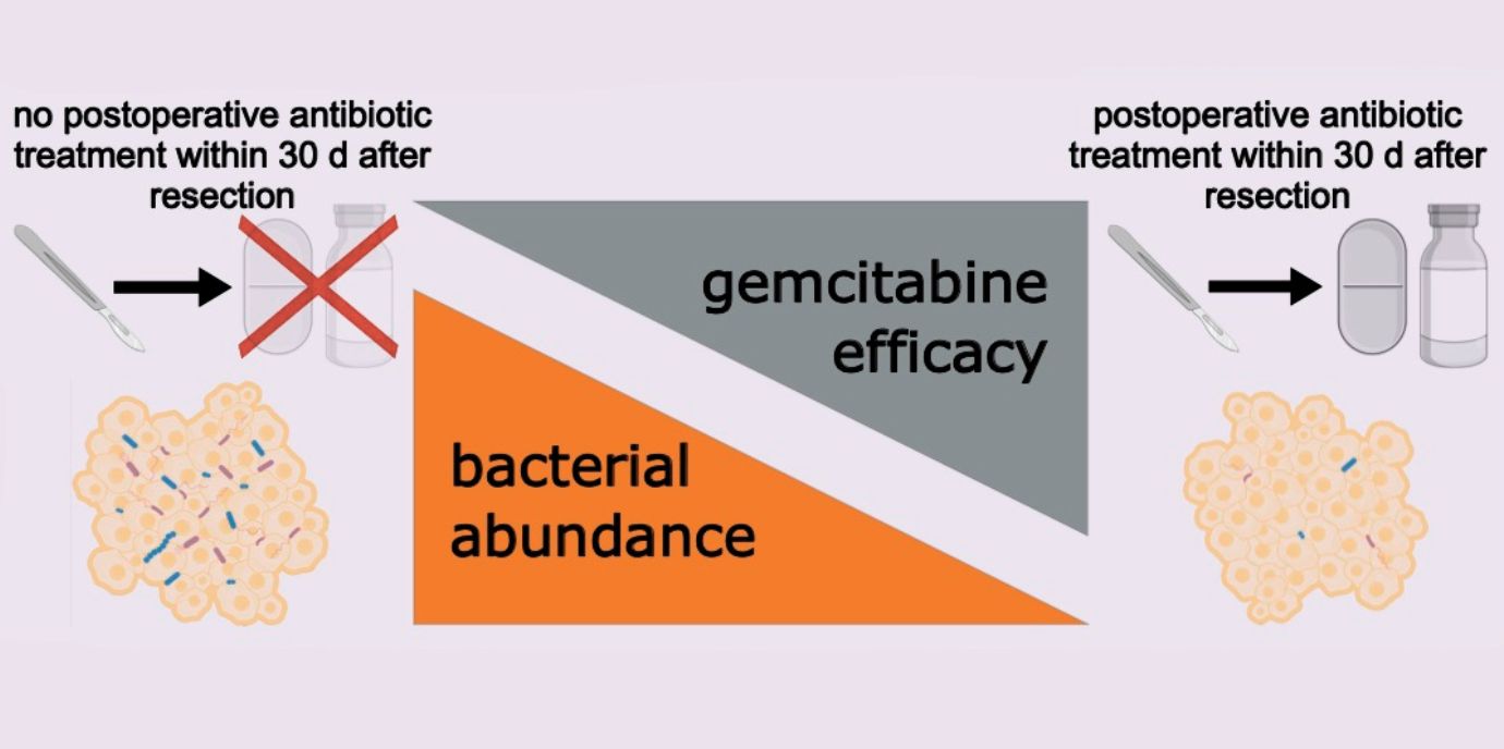 „Wir haben in unseren Studien der vergangenen Jahre gesehen, dass es bestimmte Keime gibt, die für eine sehr schlechte Prognose der Patient:innen sorgen. Das gilt insbesondere im Setting der adjuvanten Chemotherapie, welche unterstützend nach der operativen Krebsentfernung eingesetzt wird“, sagt Ormanns. Genau gesagt wird ein Tumor, der sehr viele dieser Keime enthält, von Gemzitabin, einem häufig angewandten Chemotherapeutikum, nicht ausreichend angegriffen. Eine israelische Forschungsgruppe hat bereits 2017 im Mausmodell gezeigt, dass bestimmte Keime in der Lage sind, Gemzitabin abzubauen, der Wirkstoff wird zu einem inaktiven Stoffwechselprodukt und zerstört die Krebszellen nicht mehr. Ganz grundsätzlich könne man sagen: Je höher die Bakterienlast im Tumor, desto schlechter die Prognose. Nun wurde die Forschungsarbeit mit dem Titel „Intratumoral bacterial abundance confers poor response to adjuvant gemcitabine in resected pancreatic cancer patients which is mitigated by postoperative antibiotics” im British Journal of Cancer (Nature-Gruppe) veröffentlicht.