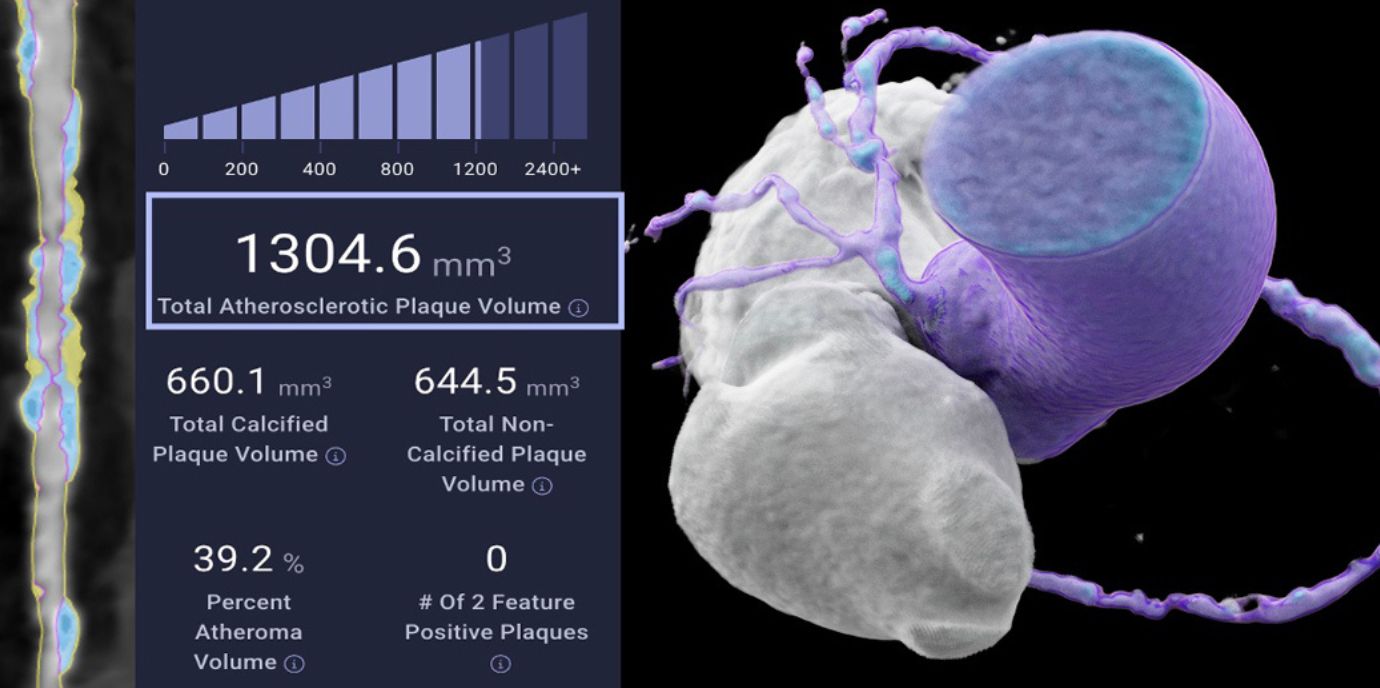 Darüber hinaus wurde in diese Studie die in den USA bereits kommerziell verfügbare KI-gesteuerte Plattform zur AI-QCT Plaqueanalyse der Firma Cleerly Inc. anhand von 16 prognostischen Merkmalen eingesetzt. „Diese webbasierte Software quantifiziert innerhalb weniger Minuten einen gesamten dreidimensionalen CT Datensatz hinsichtlich Schweregrad der Koronargefäßstenosen und atherosklerotischem Plaquevolumen und dessen Zusammensetzung. Somit können nicht nur Kalkplaques, sondern auch nicht-kalzifizierte Plaques oder lipidreiche Hochrisikoplaques (HRP) quantifiziert werden. Letztere stellen aufgrund der Plaquerupturgefahr das höchste Risiko für einen Myokardinfarkt dar. In der klinischen Praxis wird derzeit die standardisierte Befundung für die Patientinnen und Patienten mittels visueller und semiquantativer Beurteilung der Koronargefässe durchgeführt. Mittels der KI-gestützten quantitativen koronaren CT-Angiographie (AI-QCT) wäre nun eine viel schnellere und noch präzisere Befundung möglich – einschließlich kardiovaskulärer Risikostratifizierung, welche letztlich in weiterführende Therapieentscheidungen und verstärkte präventive Maßnahmen münde sollte.