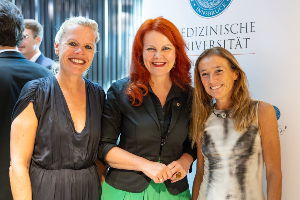 Zu den Hauptredner:innen zählten Brigitte Hütter, Präsidentin der Österreichischen Universitätenkonferenz, Markus Müller, Rektor der Medizinischen Universität Wien, die Vizerektor:innen Christine Bandtlow, Wolfgang Prodinger und Birgit Hochenegger-Stoirer sowie die Vorsitzende des Universitätsrates, Elisabeth Zanon. Auch Landesrätin Cornelia Hagele, die Rektorin der Leopold-Franzens-Universität Innsbruck, Veronika Sexl und Maximillian Richter vom Bundesministerium für Frauen, Wissenschaft und Forschung sowie Studierende richteten Worte des Dankes an Wolfgang Fleischhacker. Als Überraschungsgast sprach der renommierte Neuropsychiachter und langjährige Wegbegleiter von Rektor Fleischhacker, René Kahn.