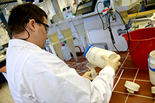 BU: Probengewinnung im Labor der Kläranlage Innsbruck.