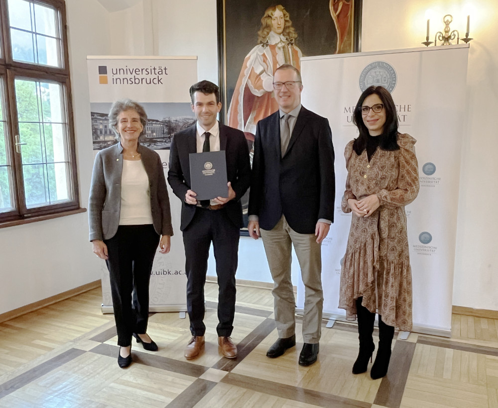 In Innsbruck fand heute die Verleihung des Preises des Fürstentums Liechtenstein für wissenschaftliche Forschung an den beiden Innsbrucker Universitäten statt. Ausgezeichnet wurden in diesem Jahr Matthias Neuner, Gertraud Medicus und Jonathan Singerton von der Universität Innsbruck sowie Julian Schwärzler von der Medizinischen Universität Innsbruck.