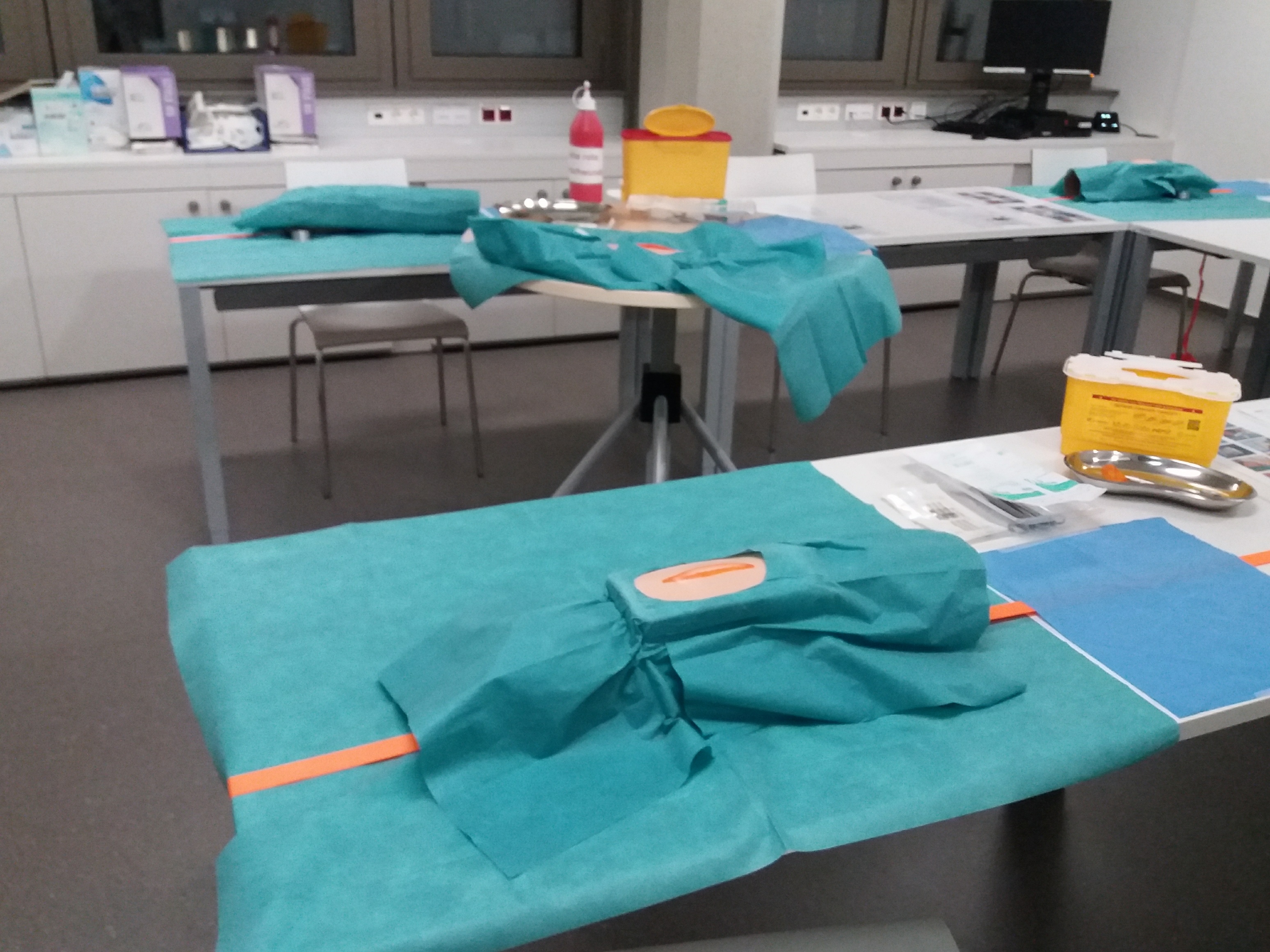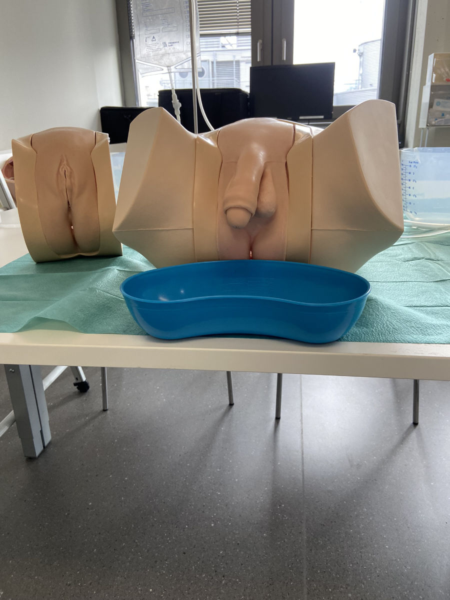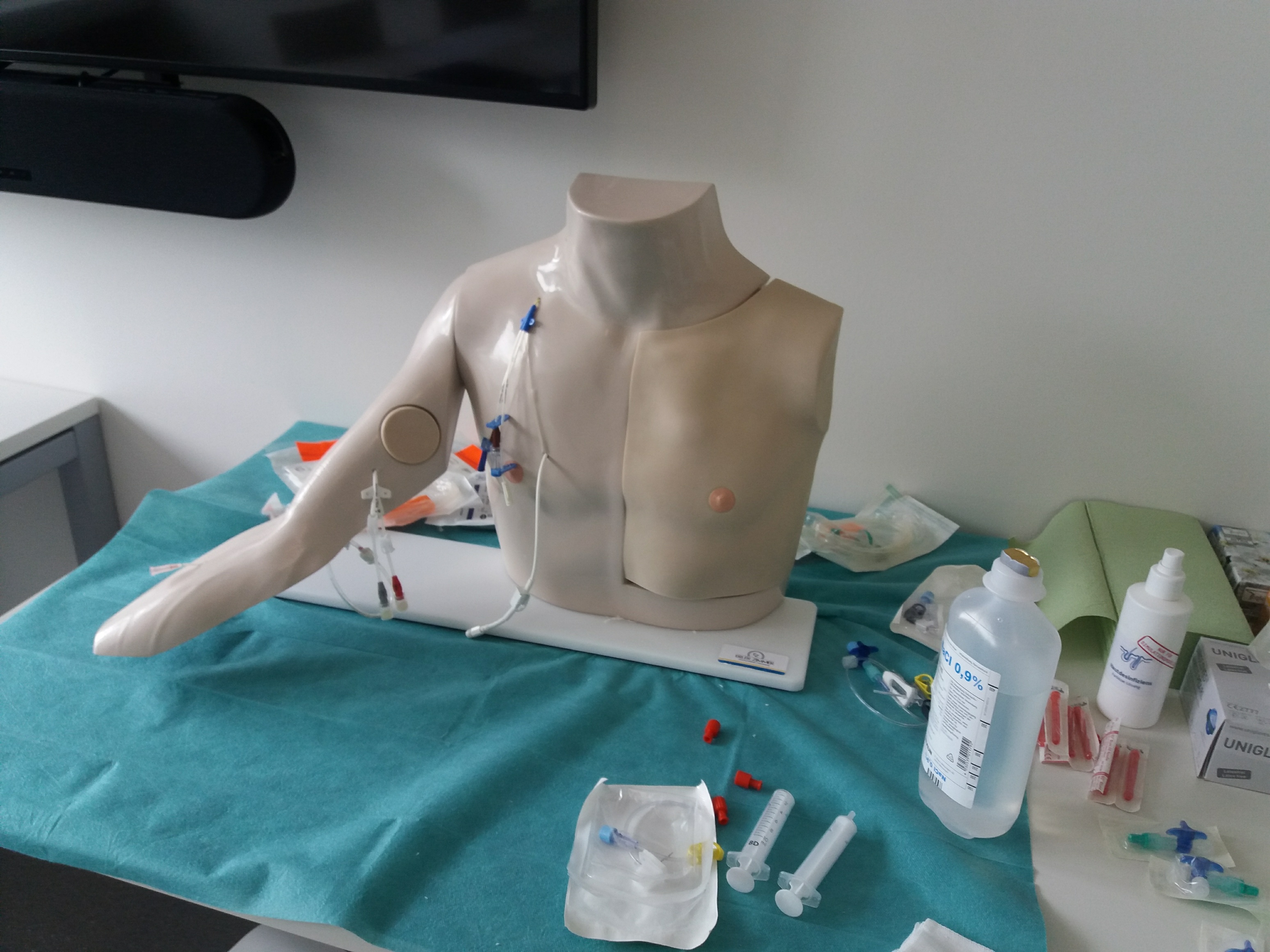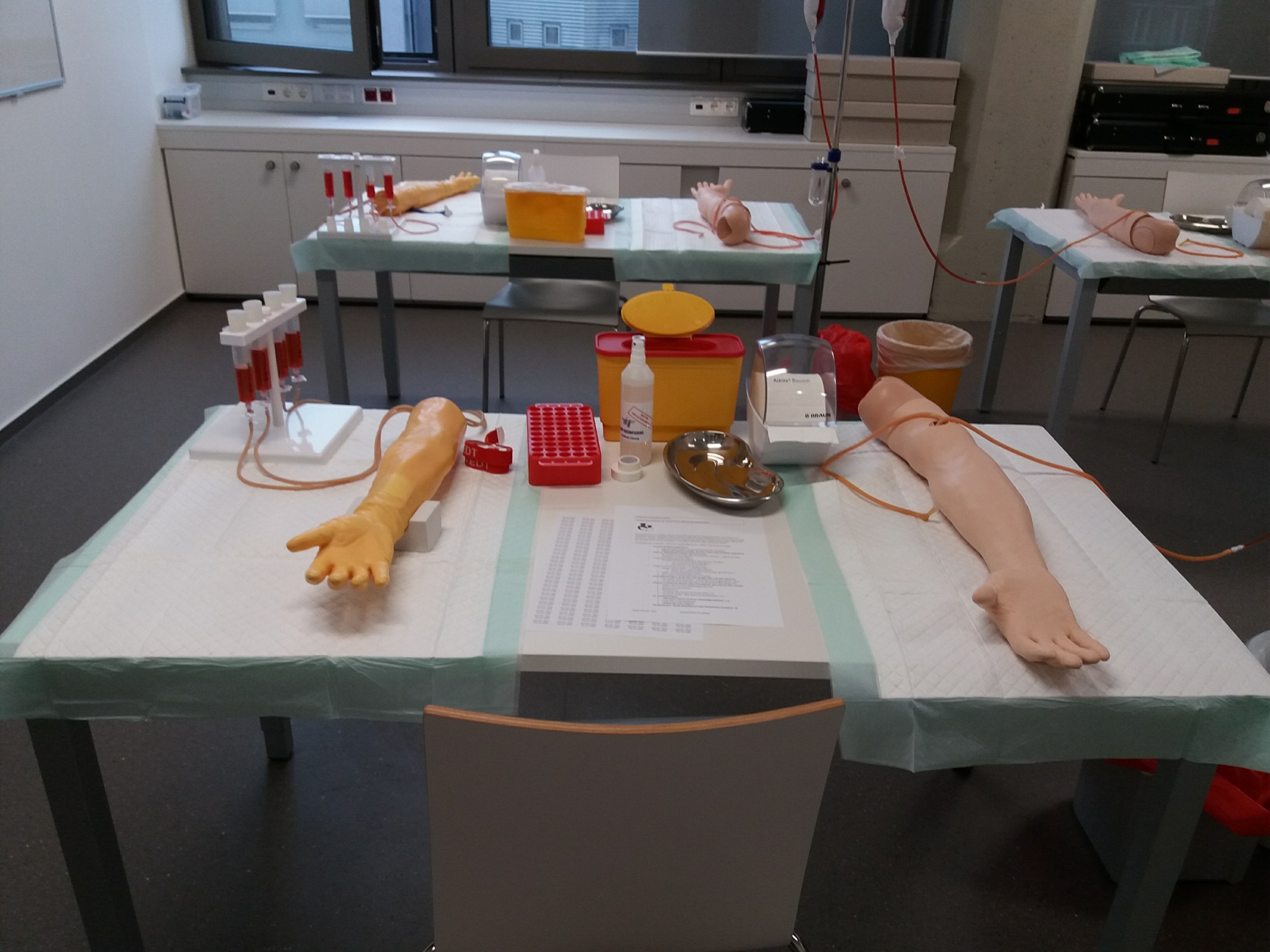 - Üben der Techniken für die Venipunktion, Legen einer Venenverweilkanüle, Vitalzeichenkontrolle, Auskultation, OP-Vorbereitung, Einzelknopfnaht