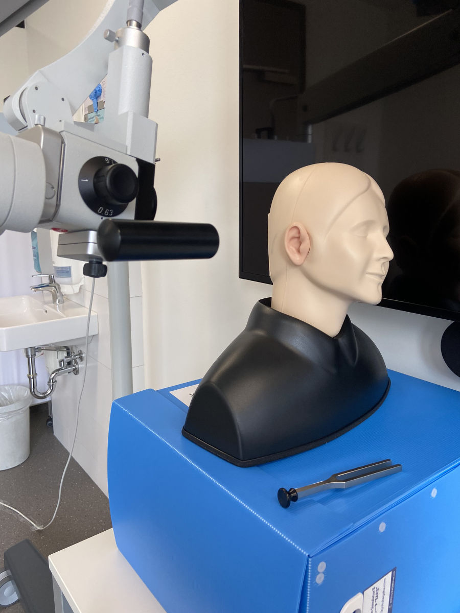 - Üben der Untersuchungstechniken für die Fachbereiche HNO, Augenheilkunde, Gynäkologie und Chirurgie mit Tutoren